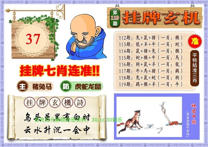 | 118期:单(猪鸡羊蛇)双(虎猴鼠狗)猪31中 |